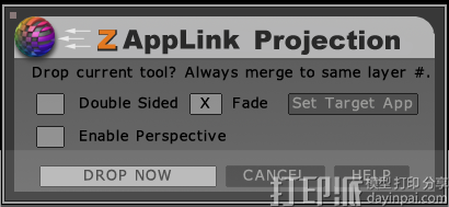 在这里我们选择第一个模式,选择第一个模式之后就会弹出ZAppLink界面,如图所示:Double Sided意思是双面,如果你的模型前后两面都要制作的话,那么就勾选这个按钮。