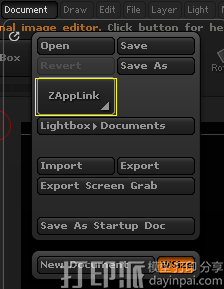 重点:Set Target App按钮的意思是:设定目标程序。因为ZZAppLink实际上是连接ZBrush和Photoshop软件的桥梁,所以我们先要指定一下Photoshop程序所在的位置。