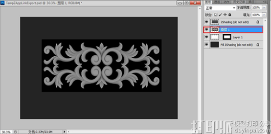 图案确定制作完成之后,然后向下合并保留蒙版,最后直接按ctrl+s直接保存。保存的位置我们不用管,Ctrl+S就会自动保存在ZBrush安装目录中ZAppLink文件夹下。