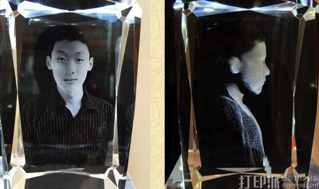 你图片上这种玻璃中有人像的效果应该是激光内雕做的。