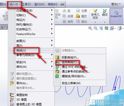 8、选择【插入】-【曲线】-【组合曲线】,在出现的界面中,分别单击草图中的螺旋线1,螺旋线2,螺旋线3。单击左侧的确定,生成组合曲线。