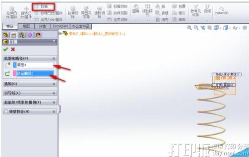 10、单击【扫描】,在扫描属性中轮廓选择“草图4”,路径选择“组合曲线1”,单击确定完成扫描。如图完成弹簧的制作。