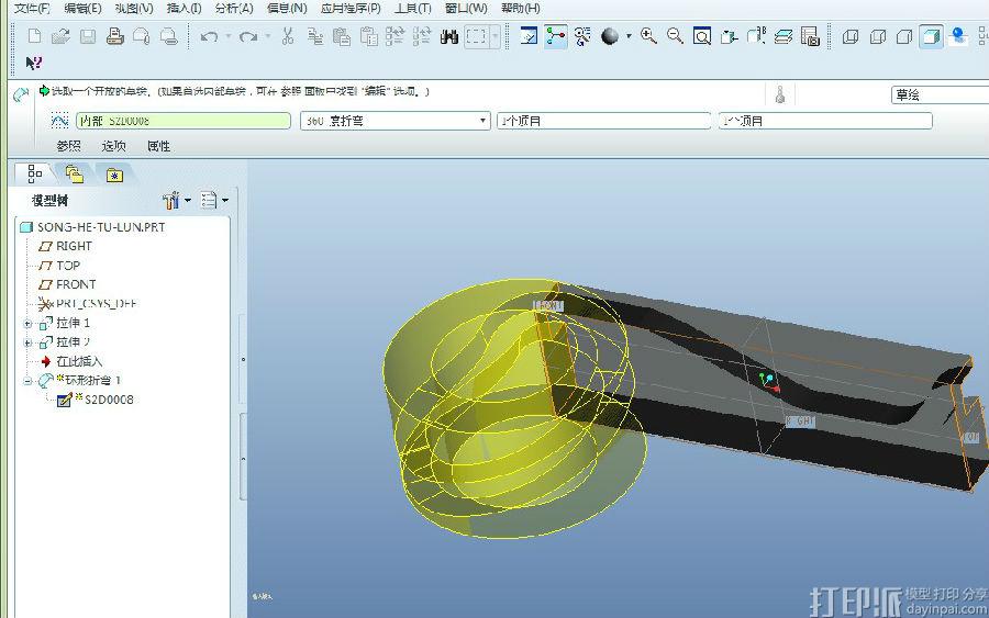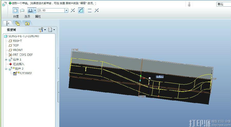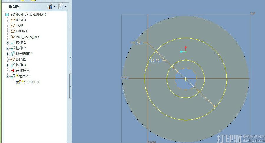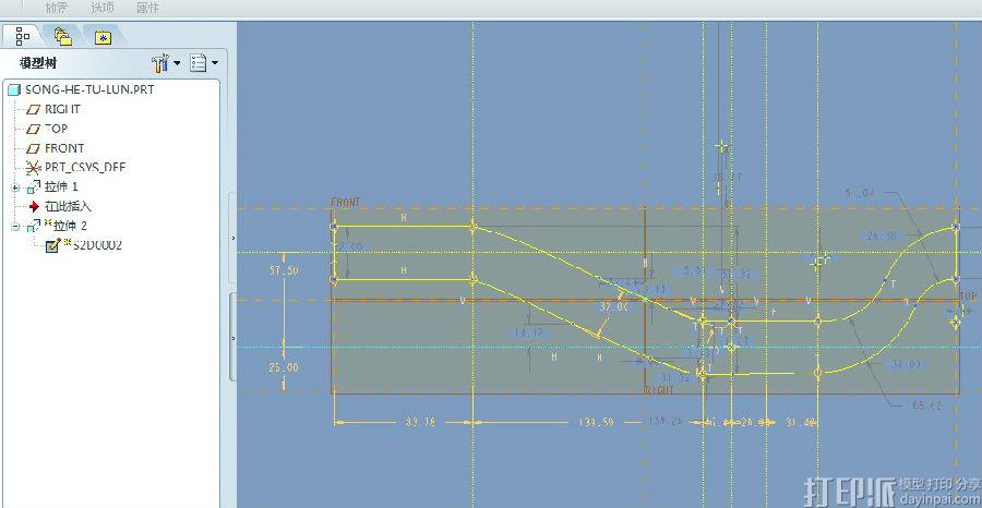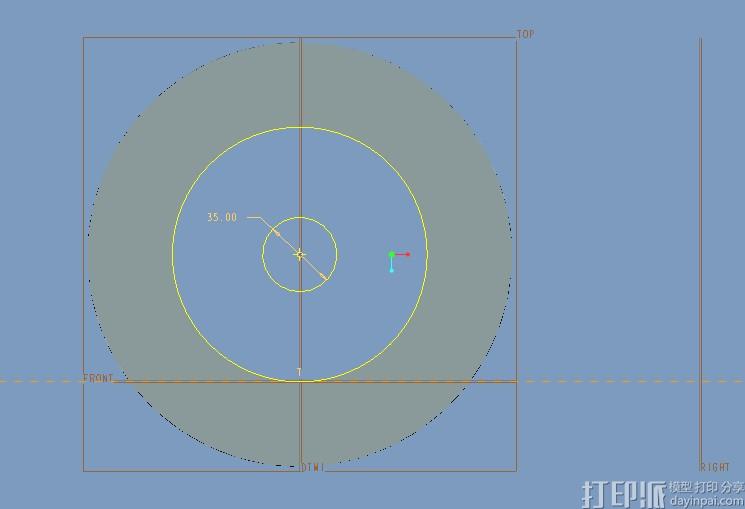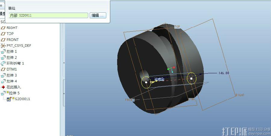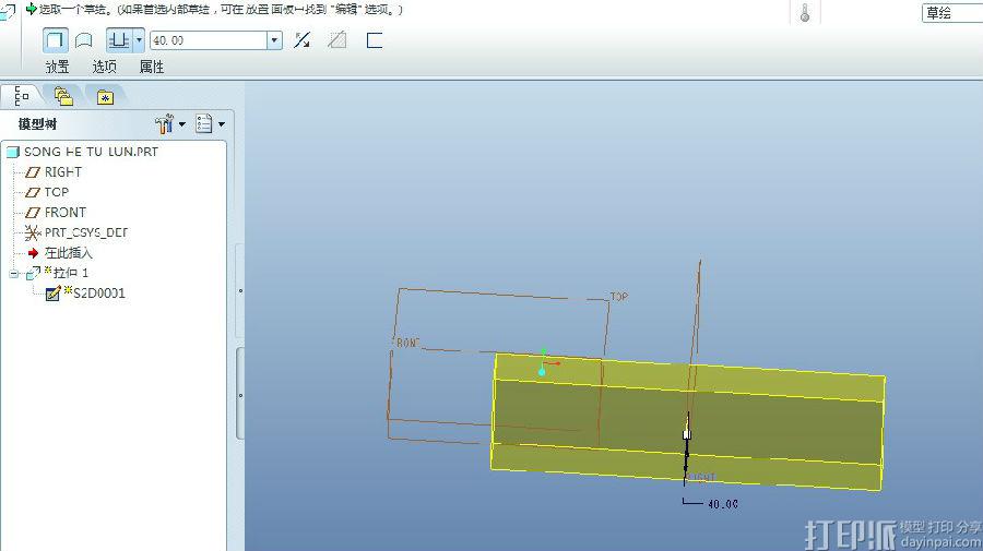 1.零件模块下新建一个:tu-lun,点击拉伸命令,以front面作为草绘面,草绘下图: