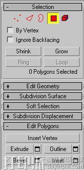 4.0 右键点物体转变为poly,然后选择子物体模式的面。
