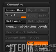 2、按Control+D提高模型的分辨率,将其细分,直到达到4个细分级别。