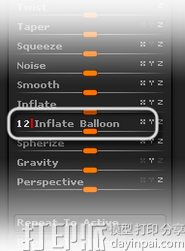 6、最后,返回到Deformation子菜单,在Inflate Balloon滑动条里输入12(点开X、Y和Z轴)。