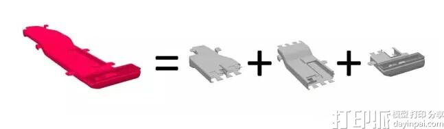 汽车仪表盘的细长类零件,需要分段切割才能在缸体内进行有效烧结成型,为便于后续有效地拼接和紧固,我们采用"鸠尾"的切口形状,这样拼接后能保证接口在平面方向的强度。拼接时,采用化学药剂进行粘接,然后打磨,以保证其强度和精度不亚于一体式打印结果。