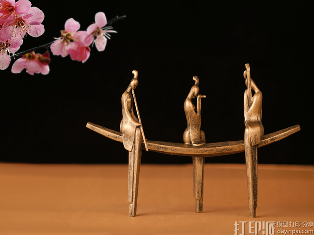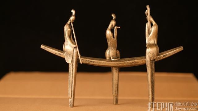 杨老与3D打印技术的最新合作,就是来自于对其雕塑作品《东方韵》的复刻了。《东方韵》作为杨老先生最具代表性的作品,3位梳着高髻的东方女子在一叶扁舟上演奏不同的乐器为型,无论是她们吹奏的古代乐器,还是衣着装扮,甚至连青铜的色泽都在传递出那种与生俱来的东方能量,充满古典、神秘和温婉,流露出强烈的东方韵味。似乎不用听声音,东方古曲的旋律已然回放于脑海。这个《东方韵》作品极致的体现了那种古老的、东方的、难以用言语表达的意境之美。