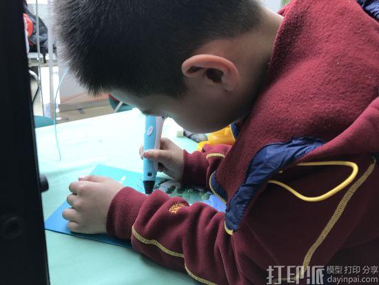 现场,小观众们围着看完机器打印还不过瘾,用3D打印笔尝试着也来“手工”3D打印一番。