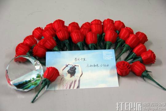 当日,该校机电工程学院一实验室的桌子上摆放了由37朵玫瑰花组成的“3”和“7”的数字图案。玫瑰花是由学院3位男生戴嘉文、李维和廖啸林通过3D打印技术制作的。