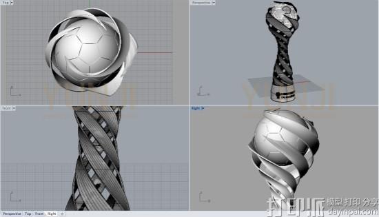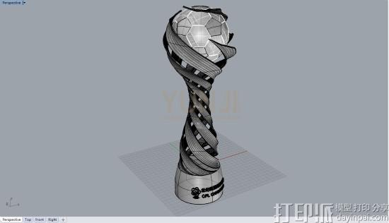 彩带交织在足球周围,寓意世纪联盟始终致力于打造良好的足球氛围,着力推广足球文化。 为了让彩带结构显得飘逸灵动,设计师进行了多次改动和提升,力求在形态比例以及结构上达到完美的结合。最后用3D打印的方式,将交织舞动的结构一体呈现在我们面前,精致的着色也提升了3D打印奖杯的质感。