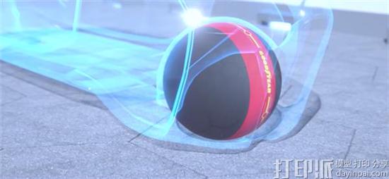 3D打印概念轮胎是通过一个四分钟的可视化动画展示的,它显示了观察者如何使用许多机器人手臂制作轮胎,以及如何将其部署到道路上。Goodyear将球形轮胎放置在一辆车上(今天的汽车标准无法识别),然后在一个有着未来城市风格的道路上行驶。
