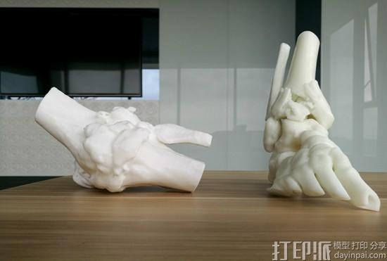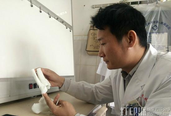 记者了解到,在2012年时,该医院的创伤骨科手外科主治医生许国杰和团队就对3D打印技术在医学上使用进行摸索,进行了多次尝试。随着3D打印技术的不断革新,许国杰和团队已使用3D模型辅助手术完成数百例治疗案例。2月28日,记者在许国杰团队所在地,看到一个以1:1比例打印的白色脚骨模型。模型纹理和细节十分清晰,踝关节局部有不少碎块。许国杰告诉记者,这是一名患者的3D病理模型,“通过模型可直观地看到创伤面及骨头粉碎的具体情况,以便医生进行诊断并与患者沟通。”