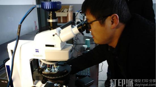 科研人员用高倍显微镜观测古陶瓷瓷片成份。