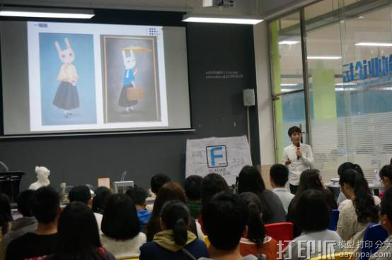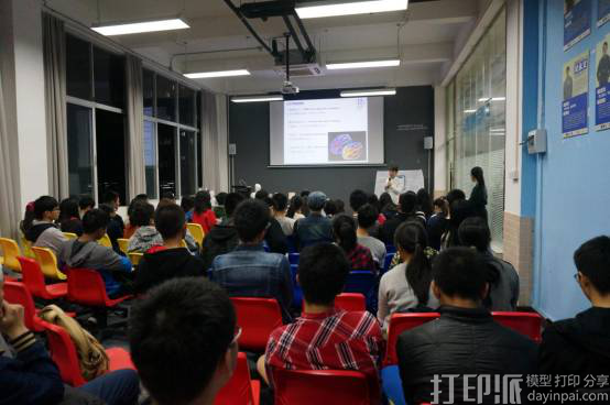 紧接着,John又为大家介绍了3D打印在中国是如何兴起的,又是如何发展的:“3D打印被认为是一门新兴技术,但其实已有三十年的历史,之所以多年来一直不温不火,是因为人们还没有发现这个技术所蕴含的巨大价值,而近几年突然受到关注,是因为美国前总统奥巴马的大力支持和投资,这个行业得以激活,在世界以燎原之势蔓延,这股热潮吹到了中国,我们团队对这个技术非常感兴趣,决定往这方面发展,扎根。”这一番话引起了在场同学对3D打印技术的浓厚兴趣。