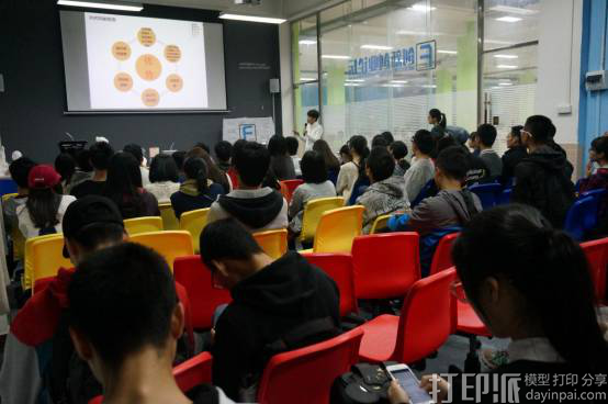 随后,John又为同学们简单的分享了3D打印的优势。3D打印的优势在于减少材料浪费、零技能制造、设计空间无限等等。但在谈到3D打印机团队的瓶颈时,John表示:“3D打印需要模型,而模型的建立需要专业的建模能力”。他强调,“如果生产者的东西不被消费者所接受,那就没有办法形成一个商业模式,而商业模式影响着一个公司规模的大小及其影响力。”