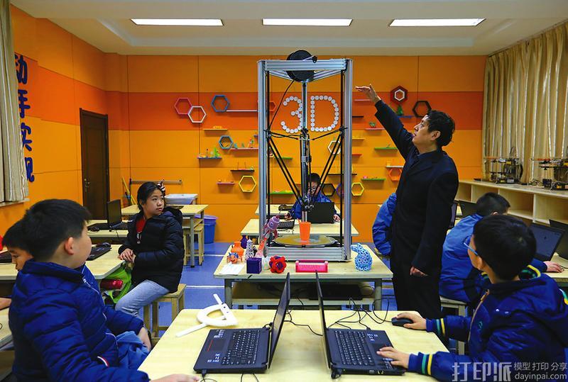 1月6日,西安交通大学附属小学3D打印课上,赵文安老师正在为学生讲解三角洲3D打印机运行原理。3D打印进入小学课堂,让学生在课堂上高效完成创意构思、三维建模设计和成品打印的过程。