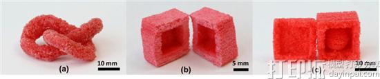 总体来说,这种方法操作起来很简单,用不同的光固化树脂可打印出形状复杂的3D多孔对象。此外,该方法有自支撑的优点,可被用来打印中空对象。