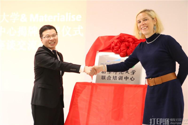 2017年3月23日,在南京师范大学科技创新中心,知名3D打印软件解决方案提供商Materialise公司与南京师范大学签署战略合作协议。Materialise中国区总经理Kim Francois女士与南京师范大学南瑞电气与自动化学院院长、江苏省三维打印装备与制造重点实验室主任杨继全教授为双方联合共建的3D打印联合培训中心进行揭牌。南京师范大学南瑞电气与自动化学院党委副书记蒋乃永主持了签约、揭牌仪式, Materialise中国区高级客户经理严辉,Materialise中国区市场经理胡丽娟以及江苏省三维打印装备与制造重点实验室相关工作人员出席了此次活动。