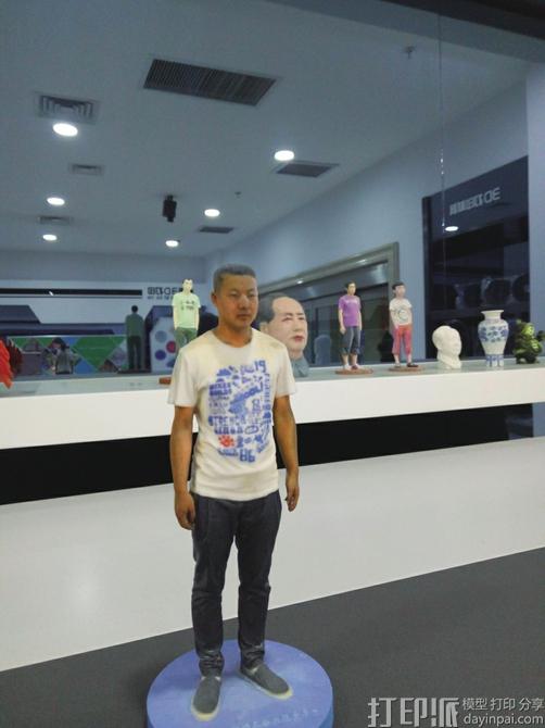 扫描仪扫过全身之后,数据自动录入电脑,闫国伟再进行详尽修改与调整,完善人像信息,然后直接导入打印机。差不多用了2个小时,扫描仪后方那台黑色3D打印机就完成了3D人像初步打印。