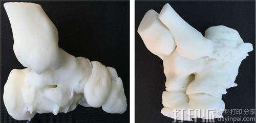 该3D打印骨科模型就是通过医学影像设备获取患者的骨骼形态数据、在电脑上构建生成骨骼的三维虚拟模型,然后按照1:1的比例用3D打印机把患者骨骼的实体结构打印出来。