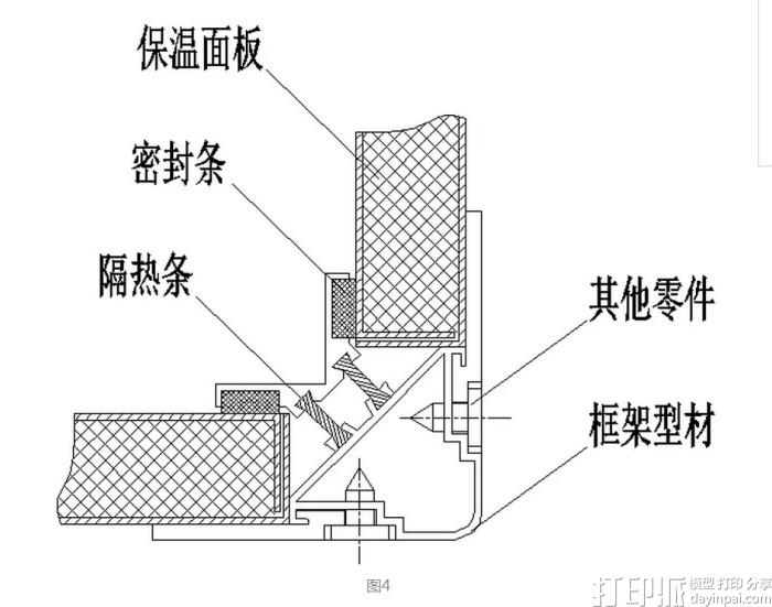 有框架的空调箱体由框架型材、保温面板、隔热条、密封条及其他零部件组成如图4,其缺点在于框架的防冷桥性能不高,保温面板与框架型材之间的接触面以及框架型材拼接处的密封难以控制,同时还存在装配工序繁琐,生产效率低的问题。