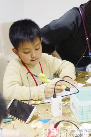 8岁的黎锌洋小朋友,第一次接触3D打印,一开始并不顺利,后来在爸爸和老师的引导下渐入佳境。他拿着自己的作品骄傲地告诉羊铁君,“我做了一个美国队长的护盾,上面有我的英文名Max!”问及他今天学到什么,小男孩想了想说:“我今天学到,凡事要有耐心,要不然做不出最好的作品。”嗯,羊铁君也为孩子的领悟力点赞!