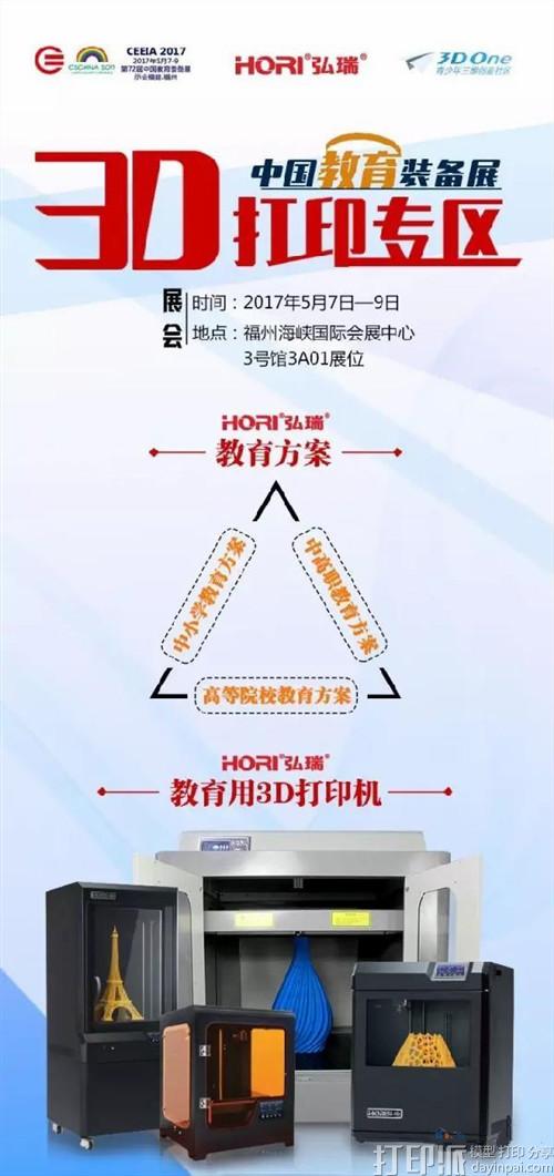 弘瑞等业内领先的3D打印机厂商,将与国内著名软件3Done合作组成“3D打印展区”,亮相全国规模最大的专业教育类展会——第72届中国教育装备展。
