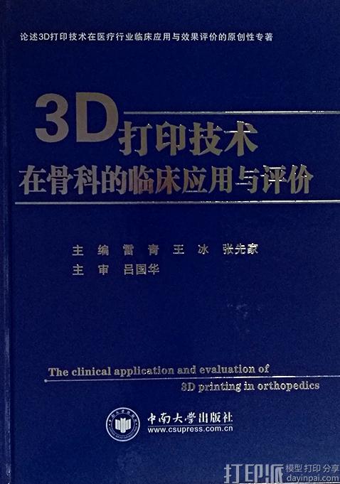 由长沙市第三医院骨科雷青主任和中南大学湘雅二医院脊柱外科王冰副主任等主编的《3D打印技术在骨科的临床应用与评价》近日已由中南大学出版社正式出版发行。该书是国内首部3D打印技术在医学领域临床应用的原创性专著,中国工程院院士、南方医科大学钟世镇教授在百忙之中为该书作序,对该书给予了高度的评价。