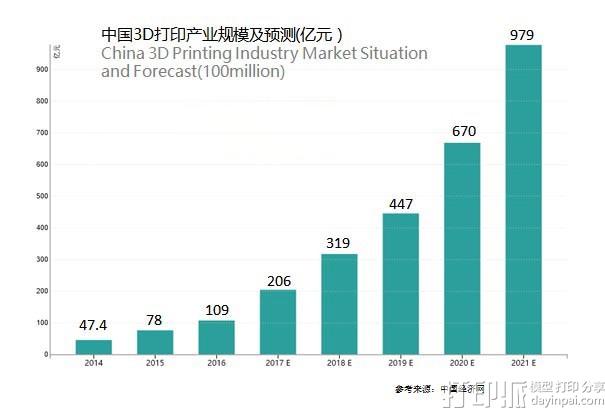 预计2017年我国3D打印产业规模将达到173亿元,未来五年(2017-2021)年均复合增长率约为41.36%,2021年产业规模将达到691亿元。