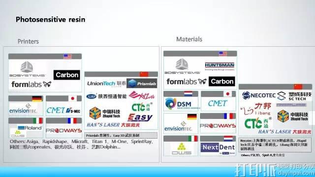 我国不少的企业突破了前期教育市场,积累用户口碑的发展瓶颈,具备了一定的行业品牌影响力和市场占有率,包括金属打印领域的西安铂力特,北京隆源,光固化领域的上海联泰,上海普利生,苏州中瑞,3D打印服务领域的上海悦瑞,砂模打印领域的苏州美迈,骨科领域的创生医疗、北京爱康等等。