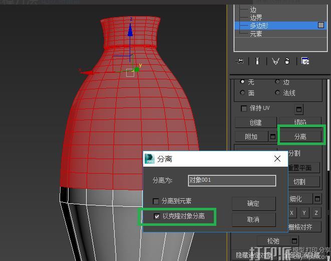 4、在多边形模式把上半边选择然后勾选克隆对象分离