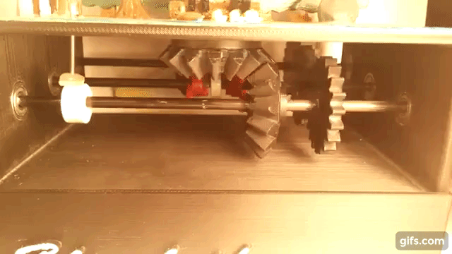 打印完成后,就是对内部齿论零件进行测试,可以看到自己的想法变实际的画面后的模样,再看看哪边需要做调整,机关是否正常运作等等。