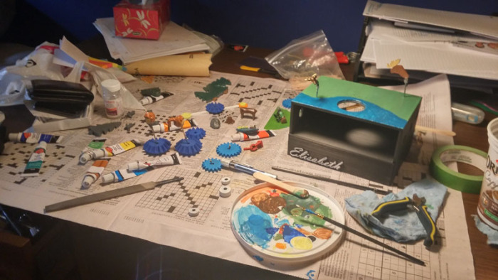 相信很多人不喜欢远距离恋爱,因为距离的关系,两个人总是无法随时随地腻在一起,远距离恋爱总是相对艰难,但也是有一个好处,那就是如果你想给对方一个惊喜时,完全不会有惊喜被提前发现的风险。国外一位网友gsxr93一直以来就想做一个纯手工的3D打印生日礼物给他的女友Elisabeth,因为他们都很热爱户外运动,每年夏天都会一起去许多地方健行。因为远距离的关系,因此gsxr93有很多自己的时间,可以秘密进行打造这个能够让女友好好欣赏的礼物。 gsxr93制作的这种复古玩具称作「自动机」,它不需要依靠电池来运作,通常只要摇动摇杆后,内部的齿轮零件就会随之运转,最后带动外部玩具装饰移动。